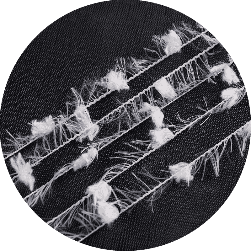 প্লেইন ওয়েভ: এই সাধারণ ইন্টারলেসিং প্যাটার্নটি একটি ভারসাম্যপূর্ণ কাঠামো তৈরি করে, যা স্থায়িত্ব প্রদানের সময় পালক সুতাকে তার অনন্য টেক্সচার প্রদর্শন করতে দেয়। এটি হালকা ওজনের স্কার্ফ এবং শালগুলির মতো অ্যাপ্লিকেশনগুলির জন্য উপযুক্ত।